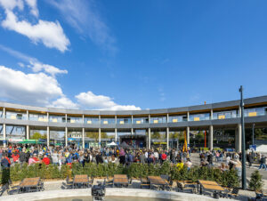 Seit vergangenen Donnerstag haben 16 der bislang 19 ansässigen Händler und Dienstleister regulär offen. Circa 3.000 Besucher:innen und rund 250 geladene Gäste kamen zur Eröffnungsfeier des Centers, das am nördlichen Stadteingang von Höhr-Grenzhausen an der A 48 auf dem Areal des ortsansässigen Glasherstellungsfirma Rastal errichtet wurde.