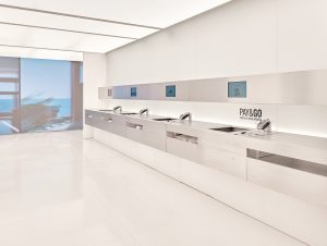 Am Eingang sowie an verschiedenen weiteren Orten der Filiale sind QR-Codes platziert, die man per Handy scannen kann, um zwecks Orientierung einen detaillierten Grundriss des Ladens zu erhalten. In dem geräumigen Umkleidebereich können Kabinen reserviert werden, sowohl physisch als auch über den „Click & Try“-Service in der Zara-Shopping-App.