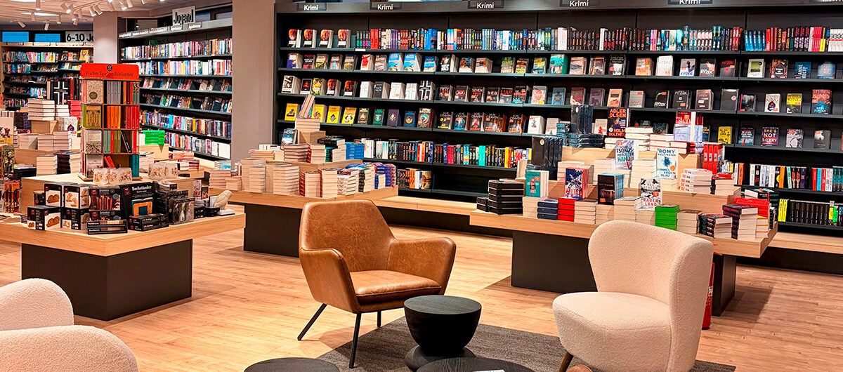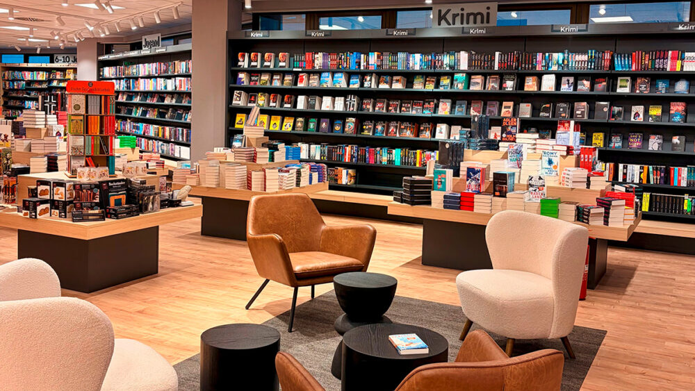 Nach umfassendem Umbau zeigt sich die Hugendubel-Filiale in Mainz in einem gänzlich überarbeiteten Designkonzept - mit Tagesbar, erweiterter Kinderwelt und barrierefreiem Zugang über Erd- und Obergeschoss. ...