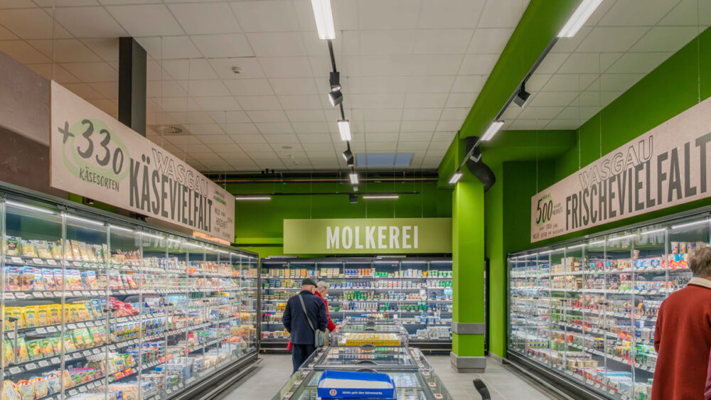 Der Edeka-Markt mit rund 1.800 qm Verkaufsfläche soll im Herbst 2026 von den selbstständigen Kaufleuten Michael und Stefan Hartmann eröffnet werden. Er bietet eine Bedientheke für frischen Fisch, eine Photovoltaik-Anlage auf dem Dach sowie E-Ladesäulen auf dem Parkplatz mit mehr als 140 Stellplätzen.