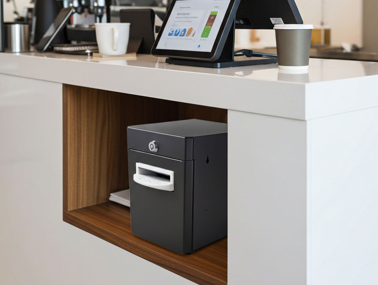 Direkt am POS integriert, validiert und stapelt er Banknoten automatisch in einer gesicherten Kassette unter dem Tresen. Das bedeutet: schnellere Transaktionen, weniger Bargeld in der Kasse und mehr Schutz für Mitarbeiter. Manager sparen täglich wertvolle Minuten, da Bargeld nicht mehr mehrmals am Tag durch den Verkaufsraum getragen werden muss. Gleichzeitig wird jeder Schein automatisch gezählt – ein echter Effizienzgewinn für Kassenabschluss und Tagesabrechnung.