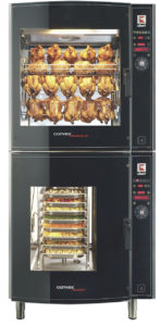 Torsten Hehner, Geschäftsführung Ubert Gastrotechnik, erklärt, wie er sich ein Cross-over-Gastronomiekonzept für den Handel vorstellt: „Die Hauptbestandteile einer heißen Theke sind Rotisserien für Grillprodukte, heiße und kalte Ausgabetheken und verschiedene Grillgeräte wie Griddleplatte oder Rostgrill. Da der Trend zum kompletten Menü geht, kann ein Kombidämpfer zur Produktion von Gemüse und Sättigungsbeilagen hinzukommen. Wenn die räumliche Situation es zulässt, sollten Durchreiche-Geräte gewählt werden, damit diese mit Gargut von der Vorbereitungsküche aus bestückt werden können. Dadurch können sich die Mitarbeiter im Verkauf ausschließlich um das fertige Produkt kümmern. Außerdem ist so eine mögliche Kontamination der frischen Ware im Verkaufsbereich ausgeschlossen.