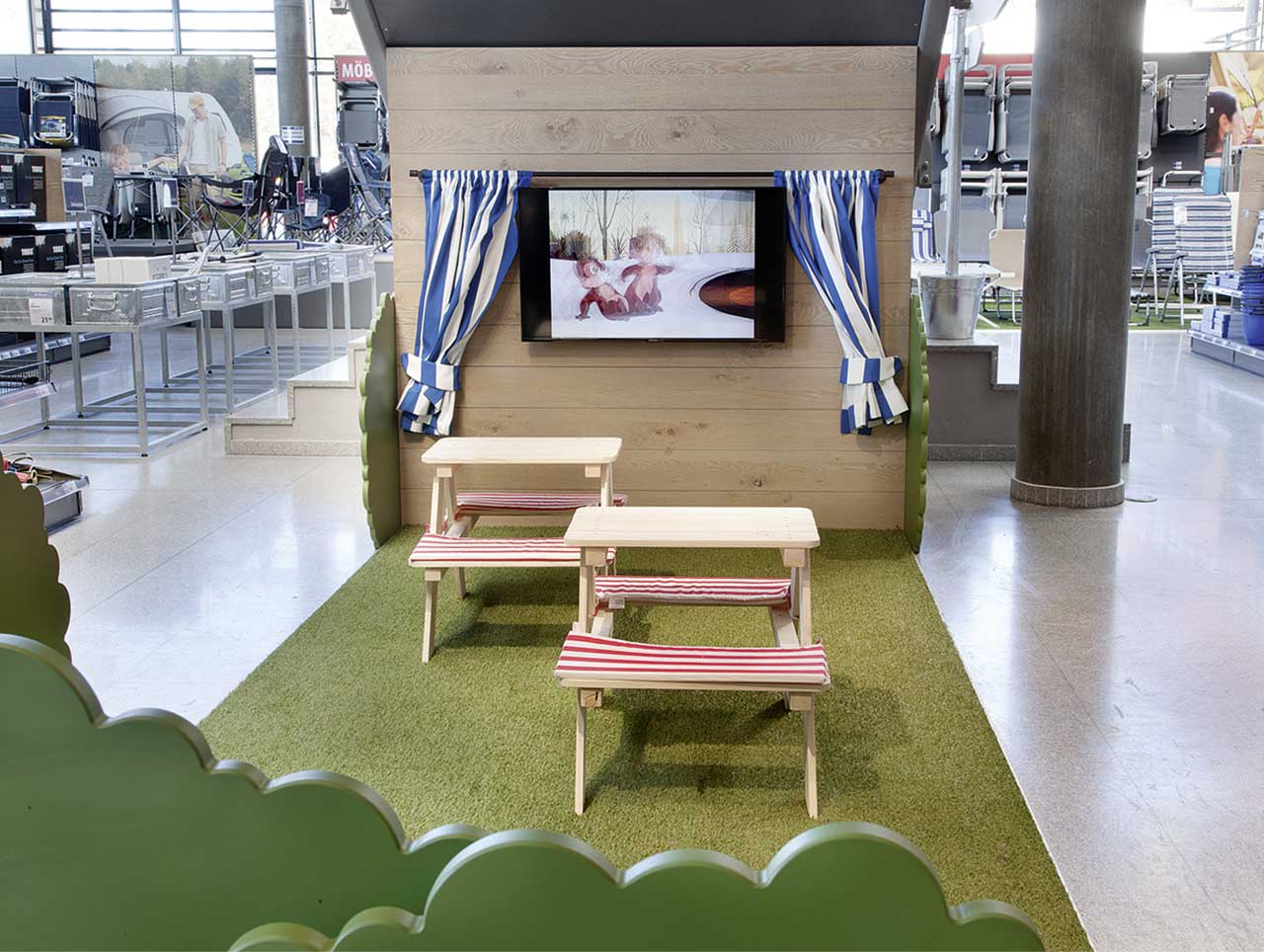 Der Camping-Spezialist Fritz Berger, der kürzlich einen 2.000 qm großen Flagshipstore in Neumarkt in der Oberpfalz eröffnete, animiert zum Experimentieren und Ausprobieren. „Wir haben das Geschäft bewusst realitätsnah und großzügig konzipiert, um den Kunden eine gute Übersicht in den Sortimenten, ein entspanntes Produkterlebnis und ein angenehmes Verweilen zu ermöglichen“, berichtet Frank Bittel, Geschäftsführer des Dormagener Unternehmens ppm Planung + Projekt Management. „Überall auf der Fläche können Produkte angefasst und getestet werden. Das vermittelt Sicherheit bei der Einkaufsentscheidung, holt die Menschen gleichzeitig ins Hier und Jetzt und entschleunigt sie.“ Erlebnis-Ladenbau tut sein Übriges. Die Infotheke mutet wie eine Hecke an, Zinkwannen dienen als Schütten für Aktionsware, der Kinderspielplatz ähnelt einem Mini-Campingplatz, und Wasserhähne dienen als Garderobenhaken.