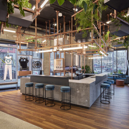 Ein Café im Gartencenter des Baumarkts, eine Boutique, die Fashion, Lebensmittel und Designware anbietet: Bei der Verschmelzung der Formate mischen sich Branchen und damit auch Nutzungsszenarien. Dagegen geht es bei der Fusion der Funktionen um eine zeitlich optimierte Nutzung der wertvollen Retail-Flächen. Was morgens ein Café oder Schuhgeschäft ist, lockt abends als Cocktailbar, Ausstellungsraum oder Event-Location. Und bei der Verschmelzung der Stile werden tradierte Einrichtungs- und Design-Konzepte bewusst gebrochen, gemischt oder neu interpretiert – etwa Fleisch, das wie kostbarer Schmuck inszeniert wird oder High-Fashion vor einer rohen Sichtbetonwand.