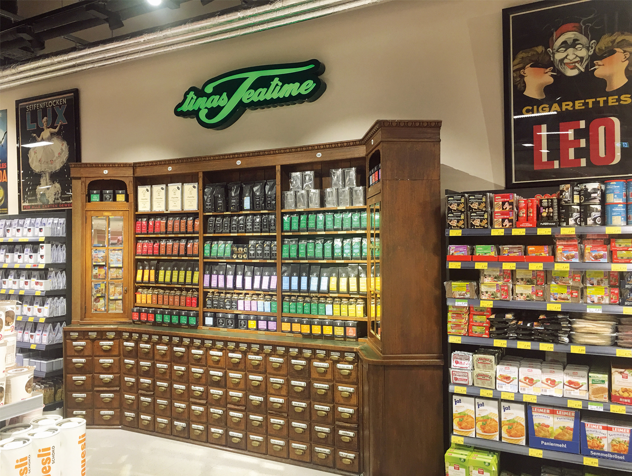 Michael W. Junker, der vor allem für den Lebensmittelhandel tätig ist, stellt über die Grundrissplanung „den Abteilungscharakter und damit die Ausstrahlung von Kompetenz“ her. Mittels „Waren- Leitbildern“ oder „Deko-Leuchttürmen“ werden Spannungsmomente erzeugt, beispielsweise zu Themen wie Kaffee oder Pasta. „So werden die Kunden von einem Bereich in den nächsten gezogen, von Sichtfeld zu Sichtfeld.“ Alternativ zu der Positionierung am Loop können die „Waren-Leitbilder“ auch an den Außenwänden platziert werden. Junker: „Das schafft Markthallen-Charakter. Zugunsten des Überblicks muss dann jedoch auch die Lichtebene höher gesetzt werden. Welche Variante man wählt, ist vom Profil des Händlers abhängig sowie von der Immobilie.“