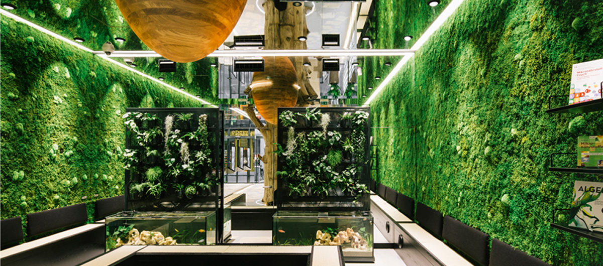 Damit kommt auch das Thema Natur ins Spiel, das nicht nur im Storedesign, sondern auch im Hospitality-Bereich zunehmend Raum greift. Der Hamburger Hotel-Designer Peter Joehnk von JOI-Design identifiziert „eine Hinwendung zur Natur und mehr Natürlichkeit sowie zu archaischen Materialien als Gegenpol zum Digitalen“. Im Ladenbau schlägt sich die Natur-Thematik nicht zuletzt im Trend zur Nachhaltigkeit nieder. „Die grundsätzliche Tendenz zu Ökologie und Nachhaltigkeit zeigt sich nicht nur im Produkt“, sagt der Designer Karl Schwitzke, Geschäftsführer der Düsseldorfer Schwitzke GmbH, „sondern auch beim Bauen, bei den Baumaterialien und am Look & Feel.“