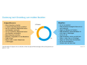 Die befragten Konsumenten wurden zunächst in die Gruppe der Aufgeschlossenen (36 Prozent der Befragten) und der Skeptiker (64 Prozent der Befragten) unterteilt. Während die rund 670 Skeptiker vor allem eine Reihe von Sicherheits- und Datenschutzbedenken äußerten, begrüßten die knapp 380 aufgeschlossenen Verbraucher die zusätzliche Bezahl-Option vor allem wegen der Argumente Vereinfachung des Bezahlprozesses, Schnelligkeit und zeitgemäßer, moderner Art des Bezahlens.