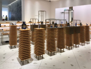 Bei dem Rundgang durch Ginza Six fällt auf, dass viele Brands im gehobenen Genre eine eigenes Süßwarensortiment mit Schwerpunkt Pralinen anbieten. So auch der neue, viergeschossige Flagshipstore von Japans größtem Kosmetikkonzern Shiseido. Gleich nach Betreten des Stores an der Chuo Dori bewegt sich der Besucher auf eine kreisrunde, klimatisierte Patisserie-Theke zu, in der die süßen Pretiosen effektvoll beleuchtet präsentiert werden. Alle gekauften Artikel werden von freundlichem Personal sorgfältig in hauseigenes Papier gewickelt – eine Tradition, die in allen hochwertigen Handelsunternehmen Tokios gepflegt wird.