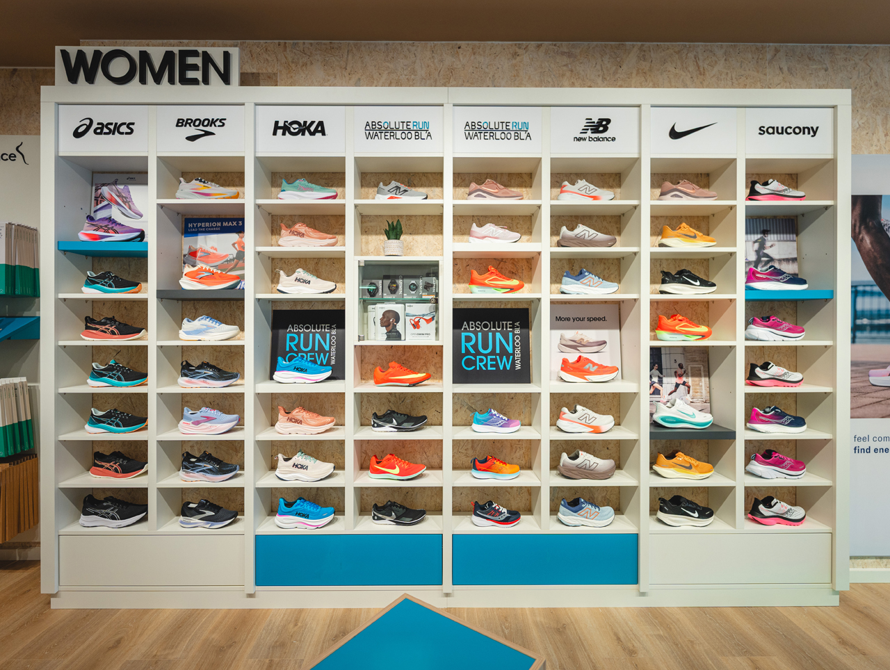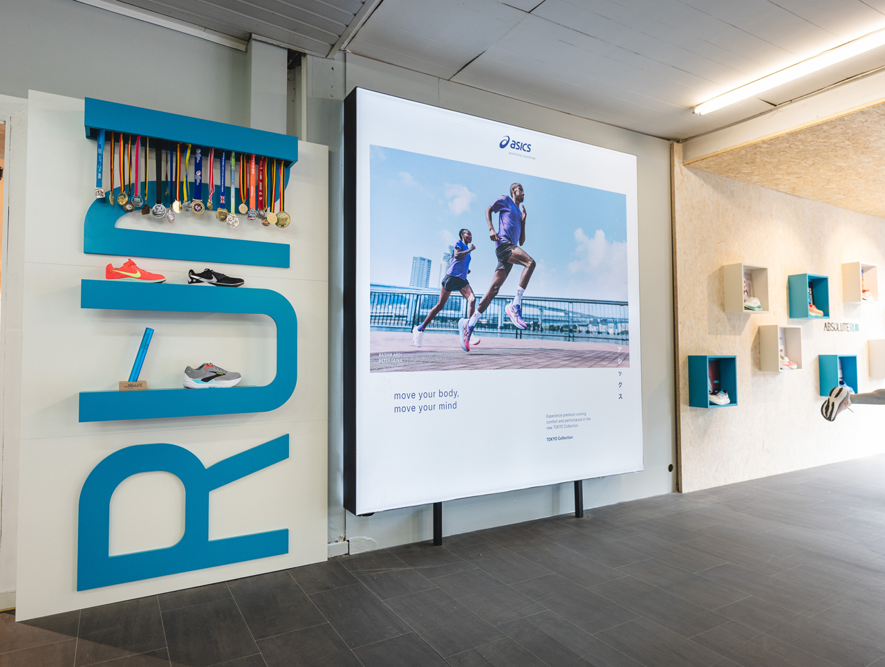 Der neue Standort in Braine-l’Alleud misst rund 200 qm und entstand durch den Umbau eines bestehenden Fahrradgeschäfts. Die Verkaufsfläche wurde hälftig aufgeteilt: Eine Seite widmet sich dem Thema Fahrrad inklusive Zubehör, die andere Hälfte bietet ein Komplettsortiment für Laufsportler:innen. Zum Start sind die Marken Asics, Brooks, Hoka, New Balance, Saucony und Nike vertreten, ergänzt durch Hardware und Zubehör von Blackroll und Garmin.