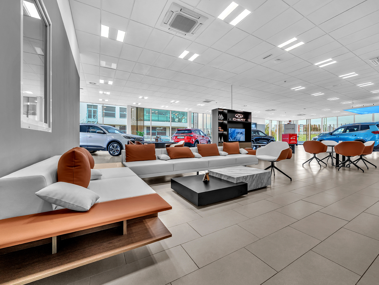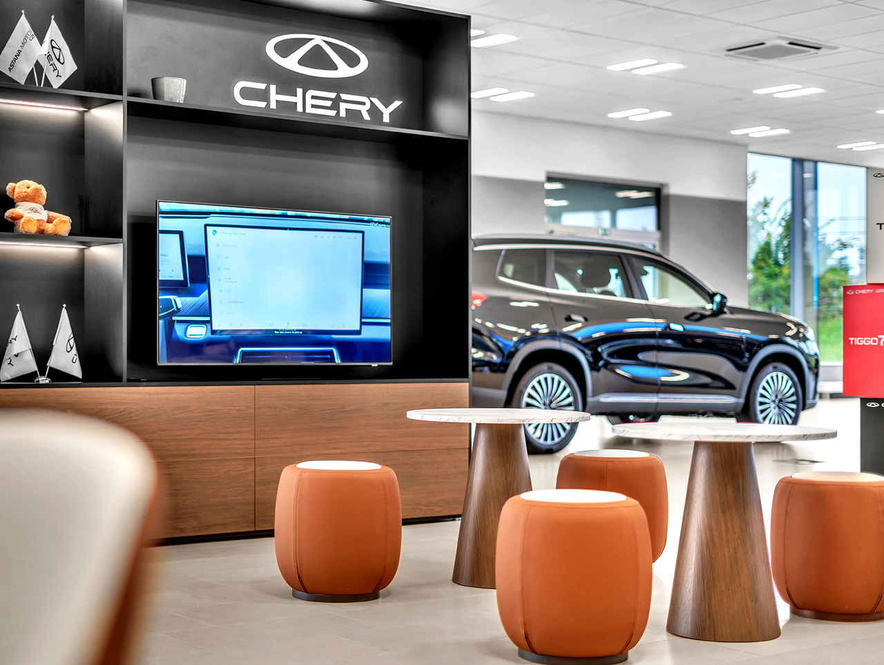 Ein Pilotstandort in Swindon fungiert als Referenz für den britischen Markt, wo Chery das Händler- und Showroom-Netzwerk in den kommenden Jahren nach eigener Aussage auf über 100 Standorte ausbauen will. Mit der Umsetzung des Roll-outs ist das Ladenbauunternehmen Umdasch The Store Makers beauftragt, das den Projektlebenszyklus von Analyse und Design über General Contracting bis zur finalen Montage verantwortet.