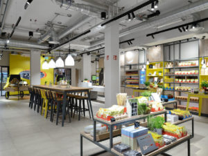 Auch im Bistro wird konsequent vom Kunden her gedacht. Es geht nicht nur um die Mahlzeiten, die „mit Zutaten von regionalen Gemüselieferanten und dem Metzger von nebenan gekocht“ und an 45 Sitzplätzen eingenommen werden, sondern auch um den Transfer der hier erlebten Esskultur in den Alltag der Kunden.
