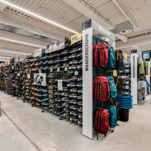 Die neue, rund 2.800 qm große Filiale dient Decathlon als Testfläche für digitale Preisschilder, die das Unternehmen hier erstmals in Deutschland erprobt.
