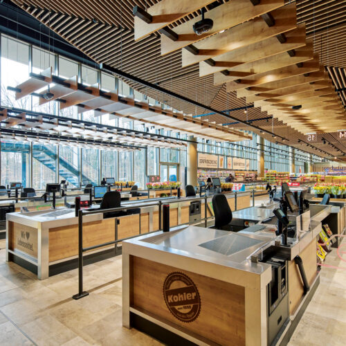 Kassen: 13 Bedienkassen, 8 SCO-Terminals Weinhumidor und Kühlräume: Kramer