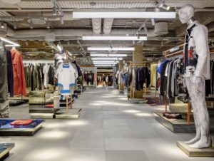 Im neuen Layout wurde die Shop-in-Shop-Konfiguration aufgegeben, alle 270 Marken, darunter 50 neue Brands, werden auf zwei Etagen in sieben Boutiquen präsentiert, die verschiedene Kollektionen zusammenfassen und miteinander kommunizieren. So befinden sich gleich neben der Jeansabteilung die Regale mit den dazu passenden Schuhen und Assessoires. Ein Set-up, das stimuliert. Die Modefans stoßen so auf Marken, die sie bisher vielleicht nicht erwogen hatten. Die Bindung der Verkäufer an eine Marke wurde aufgehoben.