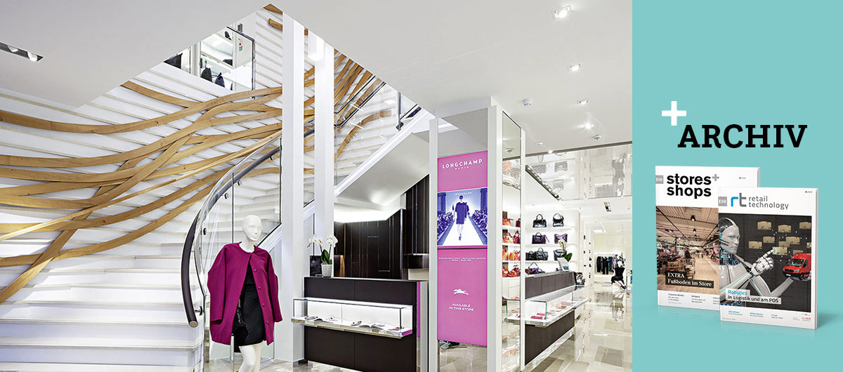 Neben den Taschen wird auch Mode präsentiert. Das moderne Storedesign wurde von der hausinternen Architektin Alexandra von Kerssenbrock entwickelt. Highlight ist ein „Kunstwerk“ aus Erlenholz an der Treppe, das von einem deutschen Schreiner gefertigt wurde. Die Holzlinien „fließen“ praktisch ins Obergeschoss. Holz, Lack, Glas und Leder bestimmen die Einrichtung mit Boden aus hellem Naturstein.