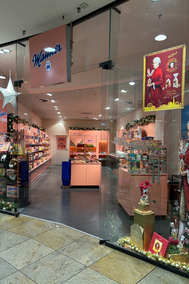 Das Sortiment umfasst die Marken Manner, Casali, Napoli, Victor Schmidt und Ildefonso. Daneben bietet der Shop Exklusivartikel, die im deutschen Lebensmitteleinzelhandel nicht erhältlich sind, sowie sogenannte Bruchware – optisch nicht perfekte, aber geschmacklich einwandfreie Süßwaren. Ergänzt wird das Angebot durch ein Merchandising-Sortiment im charakteristischen Manner-Rosa – vom Regenschirm bis zum Baby-Strampler. Die Manner Original Neapolitaner Schnitte bildet das Kernprodukt. Die von Firmengründer Josef Manner I im Jahr 1898 entwickelte Rezeptur ist vegan. Die bekannten rosa verpackten Waffelschnitten hatten bereits Gastauftritte in Filmen und Serien wie „Terminator“ mit Arnold Schwarzenegger sowie den US-Serien „Friends“ und „Ally McBeal“.