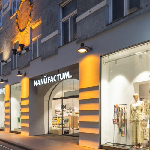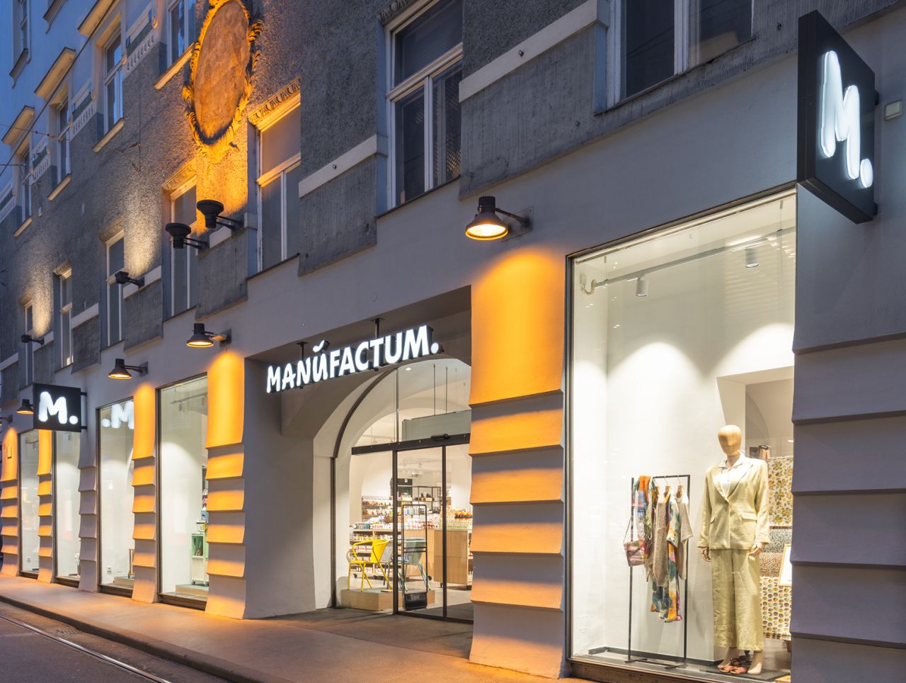 Der neue Store im Erdgeschoss des historischen Jugendstilhauses von Kastner & Öhler ist nach Wien der zweite Manufactum-Standort in Österreich. Das Gebäude wurde ab 1700 als Klarissenkloster genutzt und erhielt im frühen 20. Jahrhundert seine charakteristische Fassade. Ein umfassender Umbau 1993 veränderte das Erscheinungsbild des Eckhauses und der Erdgeschosszone.