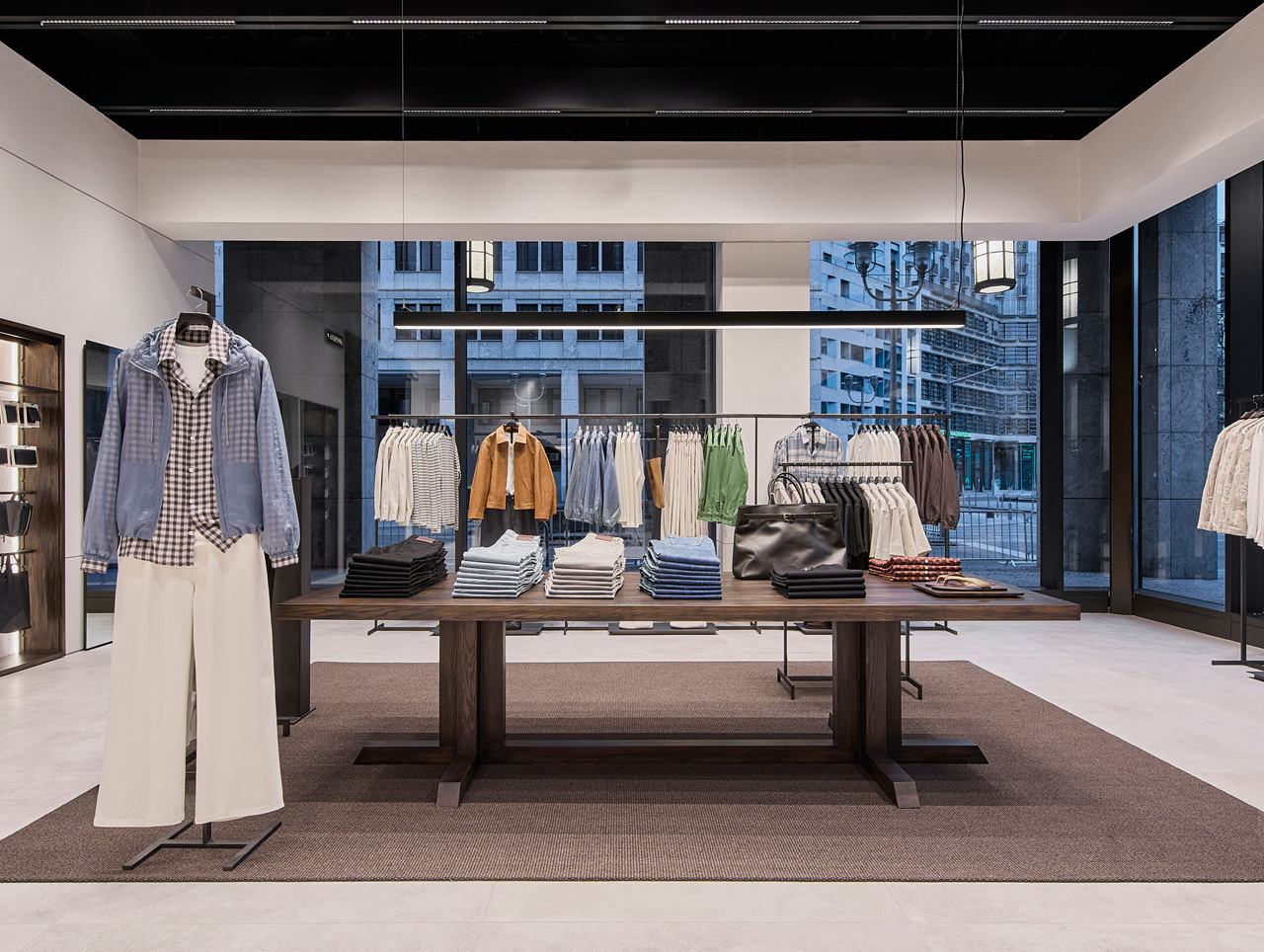 Das Storedesign des Zara Architecture Studios soll ein offenes, fließendes Raumerlebnis mit miteinander verbundenen Flächen schaffen. Die großzügige Fassadengestaltung bringt viel Tageslicht in den Store, während schwarz gestaltete, offene Decken architektonische Akzente setzen. Eine skulpturale Treppe aus mattschwarzem Holz verbindet die beiden Ebenen. Das Interieur kombiniert eine hochwertige Materialpalette und ausgewählte Designmöbel mit einzelnen antiken Elementen.