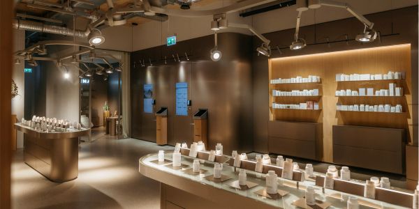 With the opening of its first German Plaza in Düsseldorf, Biogena is prioritising brick-and-mortar growth. Spanning around 1,060 sqm across three floors, the location on Königsallee combines the retail presentation of micronutrient supplements with consultation and treatment services such as wellbeing checks, cryotherapy and hyperbaric oxygen training. While the ground floor focuses on products, reception and brand storytelling, treatment rooms as well as lounge and bar areas are located on the upper and lower levels. The interior design blends anodised aluminium, wood and travertine, translating medical expertise and natural values into a premium, immersive brand experience.