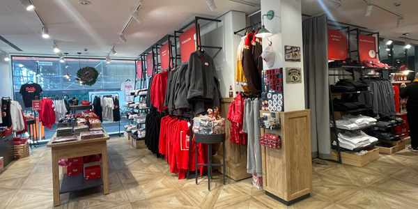 „FRÜHshoppen“ ist der Fanshop der Kölner Traditionsbrauerei direkt neben deren Brauhaus „FRÜH am Dom“ in der Altstadt. Hier finden sich eine Auswahl an kölschen Geschenkideen, Fanartikeln und praktischen Produkten rund um das Kölsch. Der Laden ist im typischen Früh-Look gestaltet, mit viel Holz, rot-weißer Farbgebung, liebevollen Details und einer klaren Warenpräsentation.