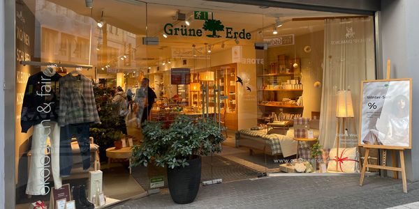 Der Grüne Erde Store Köln präsentiert auf 464 qm hochwertige Produkte aus natürlichen Rohstoffen – von Möbeln über Wohnaccessoires und Heimtextilien bis hin zu Naturkosmetik und Kleidung. In ruhiger, harmonischer Atmosphäre laden Möbelausstellung und eine Schlafwelt zum Probesitzen und -liegen auf Naturmatratzen ein, ergänzt durch Beratung durch das geschulte Team. Kundinnen und Kunden können online bestellte Artikel versandkostenfrei in den Store liefern lassen, sie vor Ort begutachten, anzuprobieren und bei Bedarf direkt im Laden umtauschen oder retournieren.
