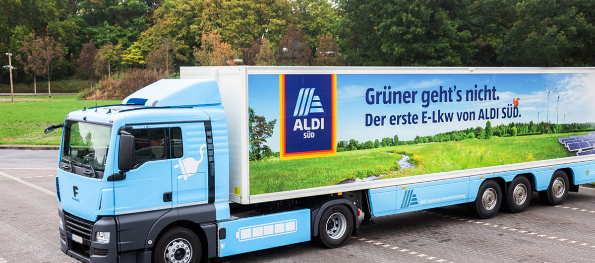 Der im Rahmen einer Livedemonstration vorgestellte E-Lkw befindet sich seit dem 13. September im Probelauf. Bei dem Fahrzeug handelt es sich um einen ursprünglich von Man hergestellten und mit Dieselmotor ausgestatteten Lkw, der von dem ostdeutschen Projektpartner Framo auf einen rein elektrischen Antrieb umgerüstet wurde. Aus technischen Gründen ist es nicht möglich, das Fahrzeug vor vorneherein ohne Dieselmotor beim eigentlichen Hersteller zu erwerben, so die Verantwortlichen von Aldi Süd. Das Fahrzeug beliefert zurzeit Aldi-Filialen in den Regionen Mülheim an der Ruhr, Oberhausen und Duisburg.