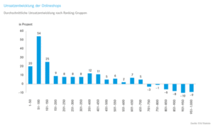 Das heißt aber nicht, dass jeder Shop in diesem Bereich des Rankings Umsatzeinbußen zu beklagen hat. Stattdessen finden sich die 200 Neueinsteiger – die es durch eine Umsatzsteigerung ins Ranking geschafft haben – hauptsächlich auf diesen Platzierungen wieder. Aufgrund fehlender Vergleichswerte zum Vorjahr können diese aber nicht mit in diese Rechnung einbezogen werden.