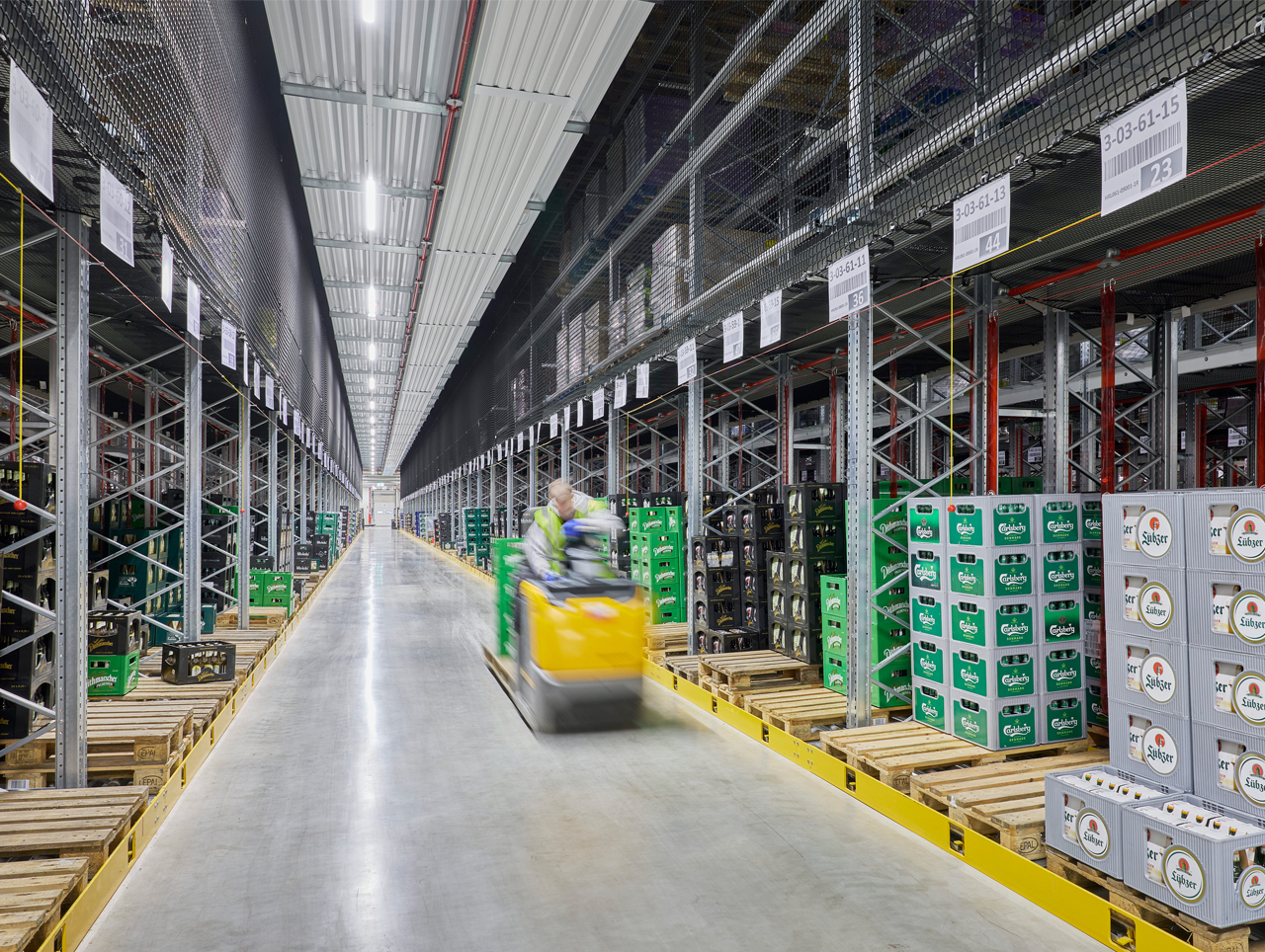 Das neue Zentrallager erstreckt sich auf rund 80.000 qm und umfasst neben dem Trockensortimentslager Tiefkühlbereiche, eine Leerguthalle sowie eine Leergutsortieranlage für Mehrweggetränke. Herzstück ist eine vollautomatische Kommissionieranlage, die laut Edeka in Spitzenzeiten bis zu 338.000 Kolli pro Tag verarbeitet. Insgesamt verfügt das Lager, inklusive des bereits bestehenden Frischdienstlagers, über 110.000 qm Fläche und 189 Lade- und Entladetore und beschäftigt rund 800 Mitarbeitende.