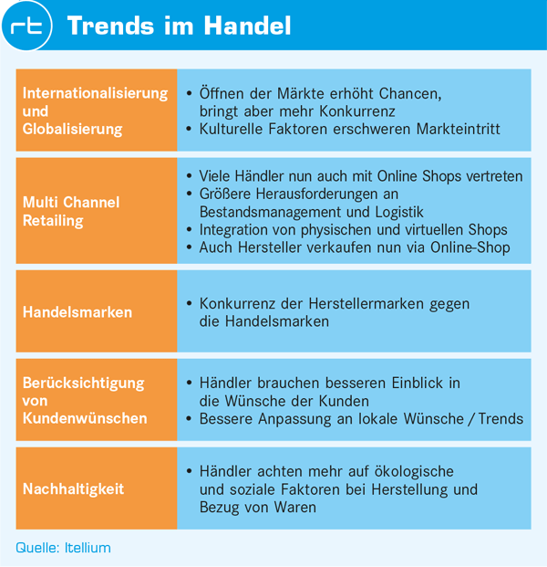 Die Modernisierung durch Standardisierung war ein notwendiger Schritt, um mit aktuellen und zukünftigen Veränderungen in der dynamischen Welt des Handels Schritt zu halten. Denn die aktuellen Trends im Handel – allen voran die Internationalisierung und Globalisierung, das Multi-Channel-Retailing, die wachsende Bedeutung von Handelsmarken, der Trend hin zur frühzeitigen Berücksichtigung von Konsumentenwünschen sowie die Bestrebungen rund um das Thema Nachhaltigkeit – stellen den Handel vor Herausforderungen, die ein hohes Maß an Effizienz, Flexibilität und Innovationsfähigkeit erfordern.